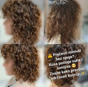 – Prvo je potrebno koristiti šampon za kovrčavu kosu, nakon njega vrlo je bitan regenerator koji mora također biti za kovrčavu kosu. Taj regenerator ne smije biti previše težak jer bi omekšao kovrče i od njih onda nemamo ništa. Kovrčava kosa po prirodi je suha i ona mora biti takva kako bi kovrče bile postojane. (moramo biti svjesni da ako blajhamo kovrčavu kosu vrlo lako možemo previše isušiti te kovrče i one se onda gube).